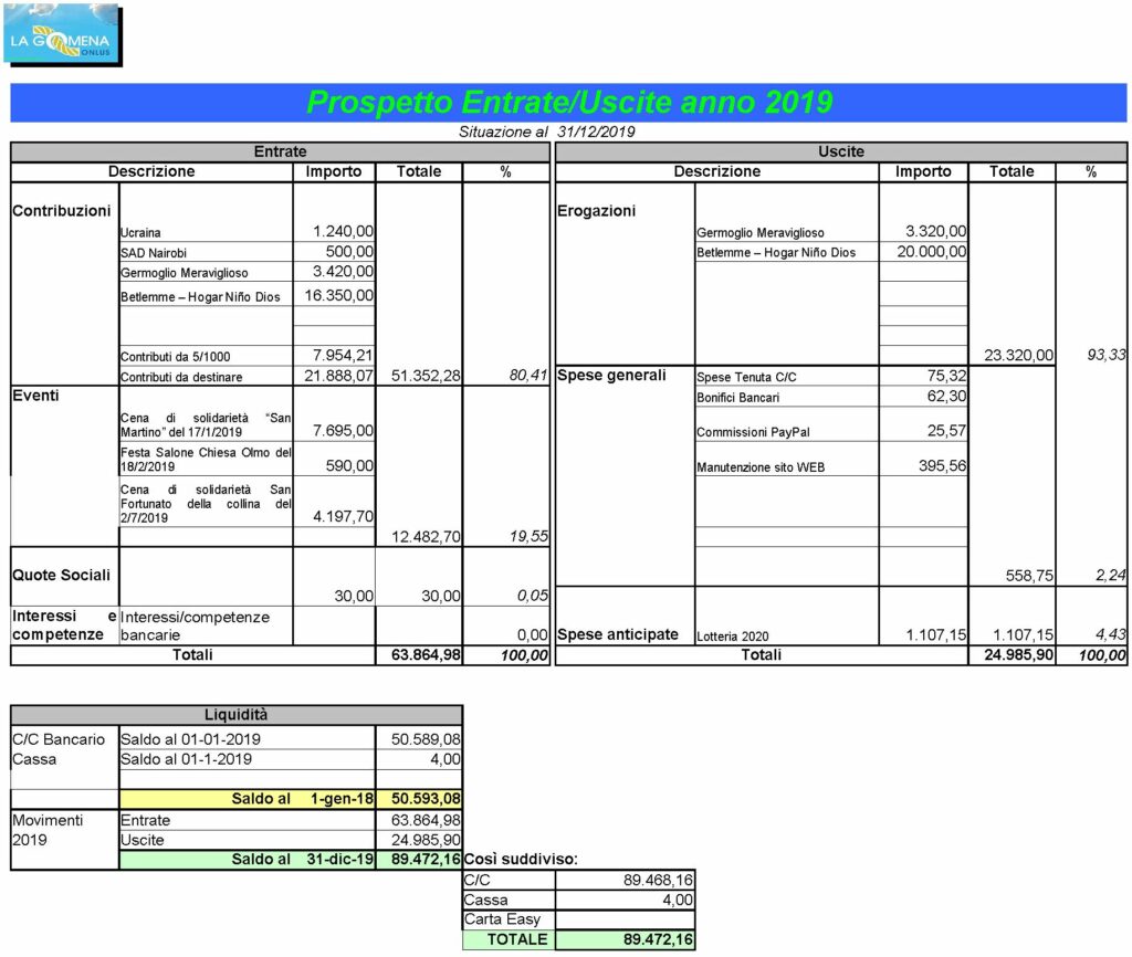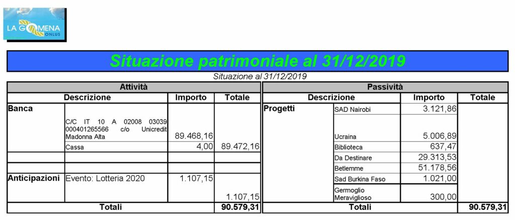In data 4 giugno 2020 è stato approvato il bilancio dell’Associazione per l’anno 2019, che qui di seguito pubblichiamo