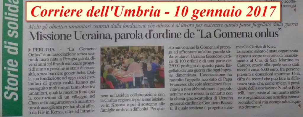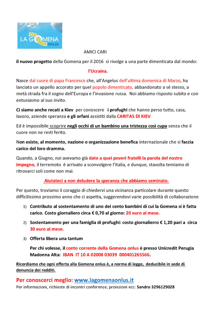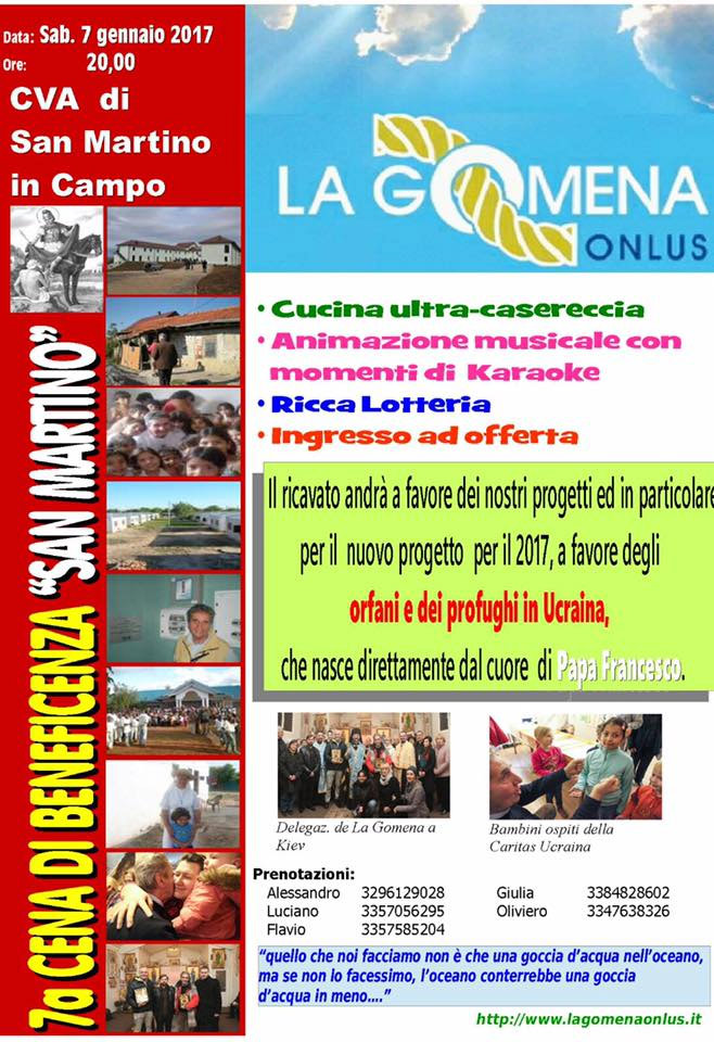 Tema della serata sarà il nuovo progetto de La Gomena per il 2017: Sostegno agli orfani ed ai profughi dell’Ucraina.